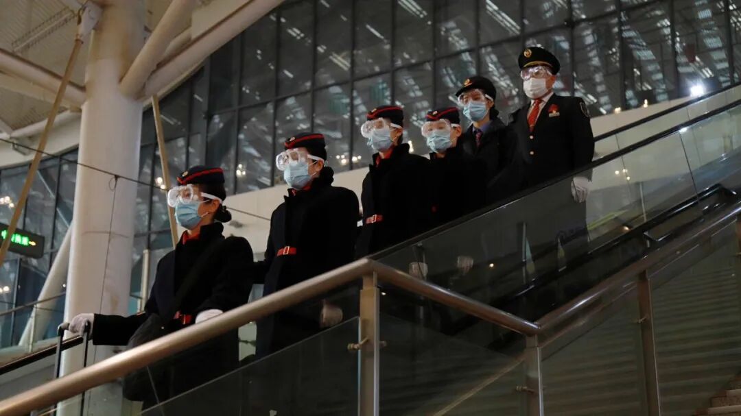 铁路部门通过进站测温、车上体温抽检、取消餐车就餐、实行送餐服务、减少车内走动、加强防疫知识宣传等措施,确保旅客平安出行;与地铁、公共汽车等公共交通部门做好了接驳对接工作,车站工作人员和志愿者在进出站口等客流集中处所加强引导服务。